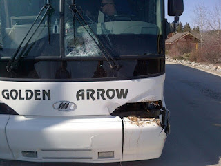 bus trying to get a glimpse of the beast that took a nice chunk out of our bus.